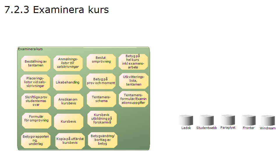 | Gallras tillsammans med tentamen 2 år efter beslutet | Elektronsik mellanarkiv, Närarkiv studenttorget | Nej | | Ladok, Windream | RA-MS 2001:50.